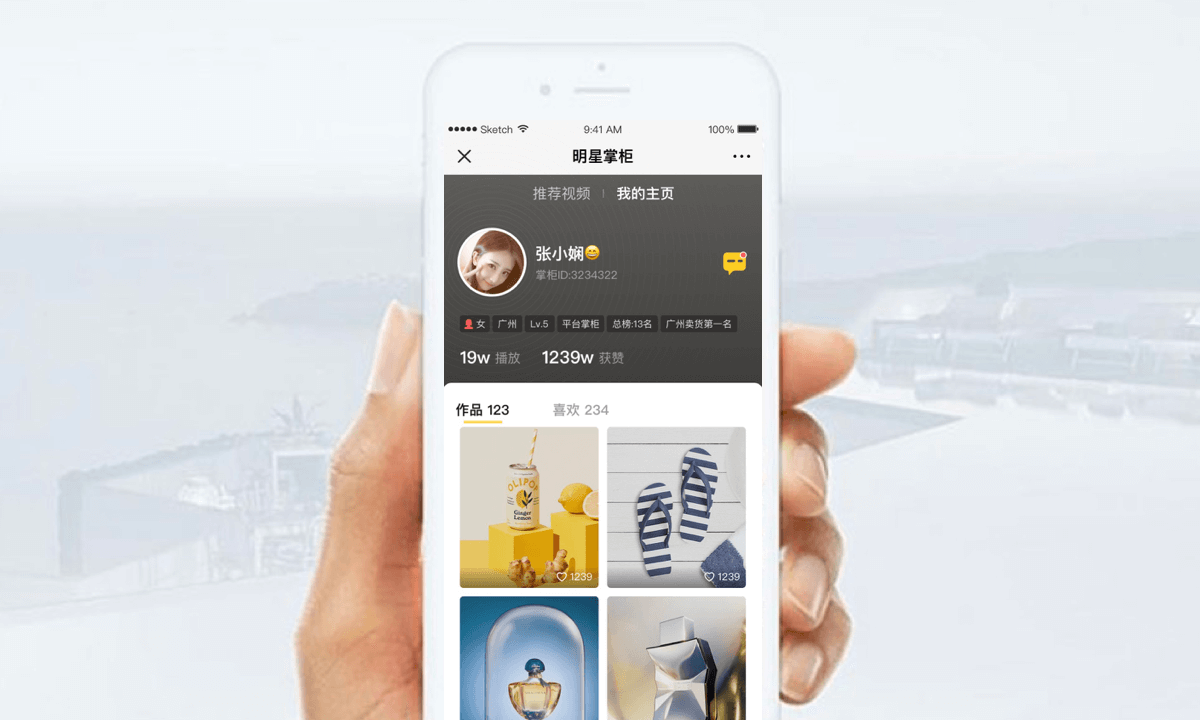 通过游戏化的设计,让小店创业者能够通过分享PGC内容及UGC内容,完成商品在个人社交圈内的展示。小店创业者不仅可以自己创作体验视频,还可以公开发表到整个平台。